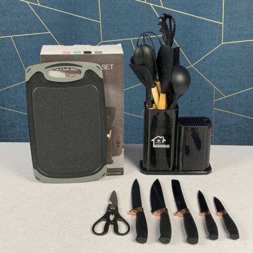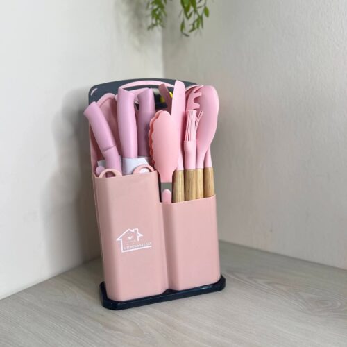 19 Piece Set of Silicone Kitchen Utensil Set With Wooden Handle and Cuttings Board Storage Bucket Kitchen Accessories Se