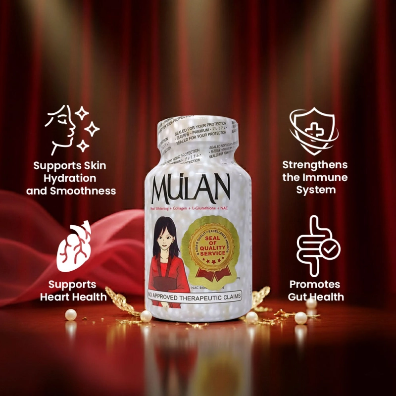 Mulan 4 In 1 Whitening Capsule হলো একটি প্রিমিয়াম ডায়েটারি সাপ্লিমেন্ট, যাতে আছে Collagen, Pearl Whitening, L-Glutathione এবং NAC — যা একসাথে কাজ করে ত্বকের গ্লো বাড়াতে, বয়সের ছাপ কমাতে এবং সামগ্রিক স্কিন হেল্থ উন্নত করতে।